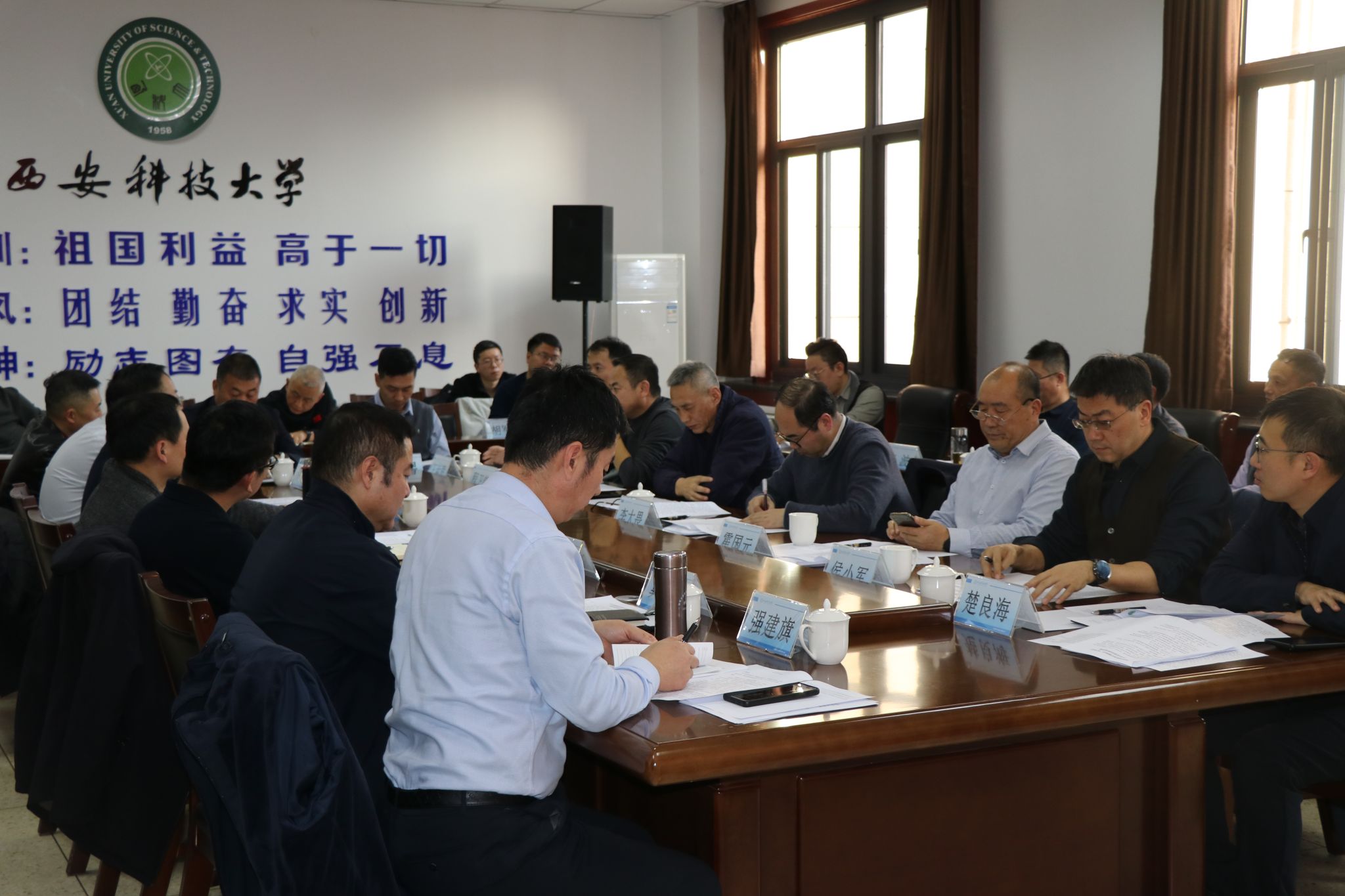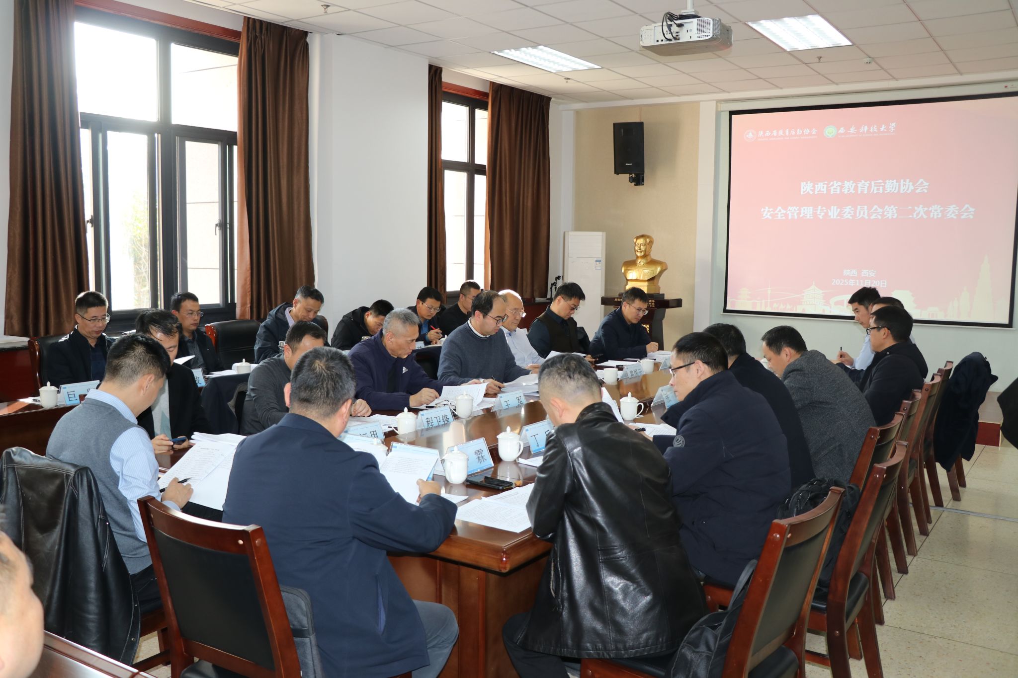 11月20日下午,陕西省教育后勤协会安全管理专业委员会(以下简称“安专会”)第二次常务委员会议在西安科技大学临潼校区骊山校园煤炭科技中心召开。受安专会主任曹明委托,会议由安专会秘书长、西安科技大学后勤处处长李大畏主持。安专会常委成员及相关负责人参会。